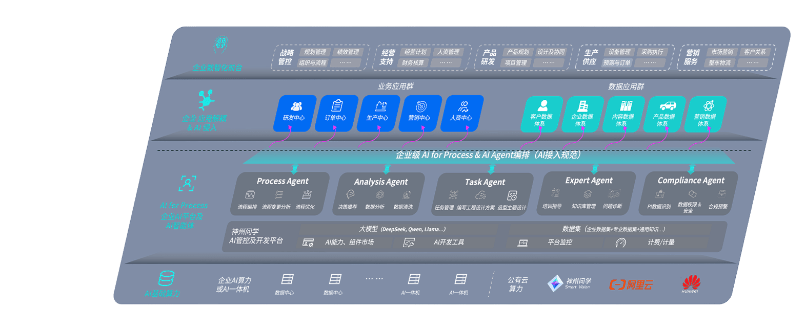 28圈问学智车解决方案是一套基于AI技术的汽车行业智能化系统,,,覆盖从底层算力到顶层AI应用的全栈方案。。。方案由算力层、、模型层和应用层组成:算力层,,,,方案支持多种一体机配置,,,,具备云端灵活部署、、、、多云适配以及动态优化计算资源的能力;模型层,,28圈问学平台版提供了企业级AI应用一站式构建与管理平台,,,,支持基于后训练强化技术的汽车企业专属模型的训练、、、评测和运营;应用层,,,28圈问学DeepSeek版提供包括超级员工、、、、智能招采、、、、智能营销、、、智能客服、、、AI for BI等一系列解决方案,,可助力汽车行业实现数字化转型,,,让管理更智能、、响应更敏捷。。。